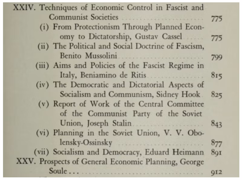 Utagundua kuwa sehemu ya uchumi inajumuisha michango ya Benito Mussolini na Joseph Stalin. Ndiyo, mawazo na utawala wao wa kisiasa ulikuwa sehemu ya mazungumzo yaliyokuwapo. Ni katika insha hii, ambayo inaelekea iliandikwa na Profesa Giovanni Gentile, Waziri wa Elimu ya Umma, ambamo Mussolini alitoa taarifa hii fupi: “Ufashisti unaitwa kwa kufaa zaidi ushirika, kwa kuwa ni muunganiko kamili wa Serikali na mamlaka ya shirika.”